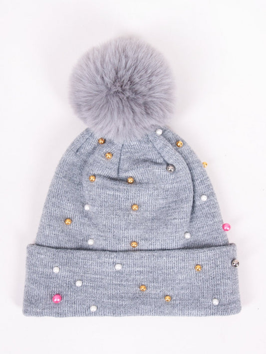 Otroška zimska kapa s cofom za dekleta Perlice, siva, 8-13 let