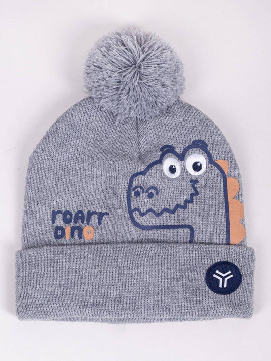 Otroška zimska kapa s cofom za fante DINO, siva, 6 mes-2 let
