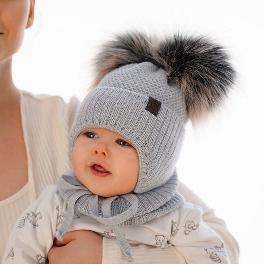 Otroška zimska kapa z dvema cofoma s šalom za fante Randel, 1-3 let