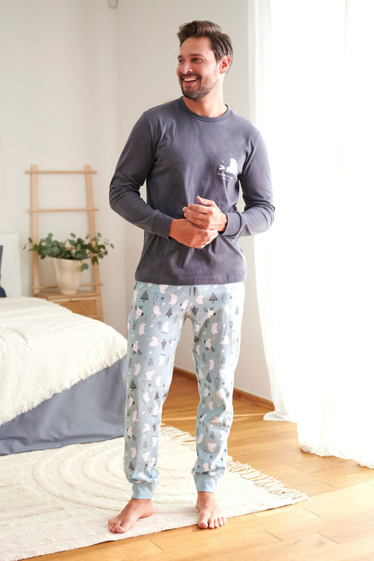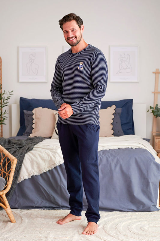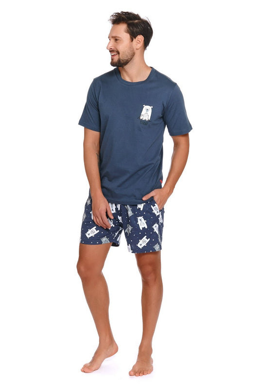 Moška pižama, modra, 95% bombaž 5% poliester, Medvedek