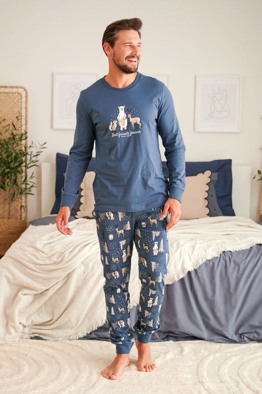 Moška pižama, modra, 100% bombaž, Gozdne živali