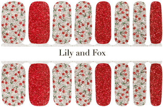 Neprozorne lak nalepke za nohte, 16 kom, CHERRY SPARKLE