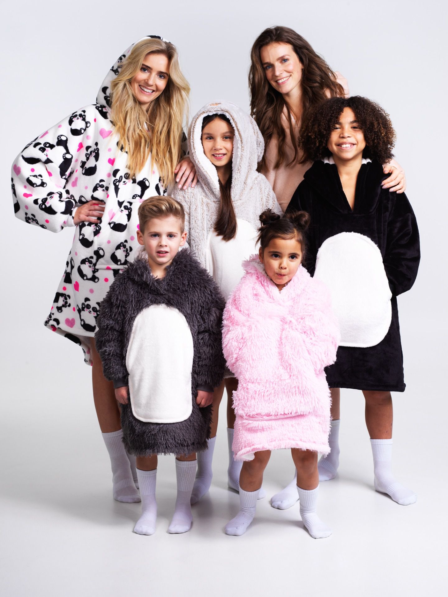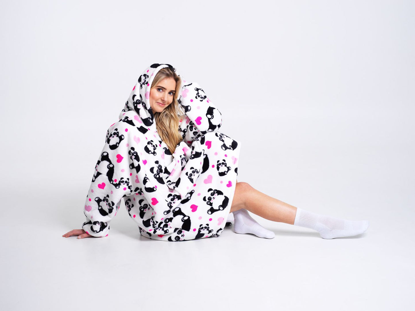 Hoodie odeja z rokavi za odrasle Panda. Univerzalna velikost - 90 cm x 85 cm x 10 cm.