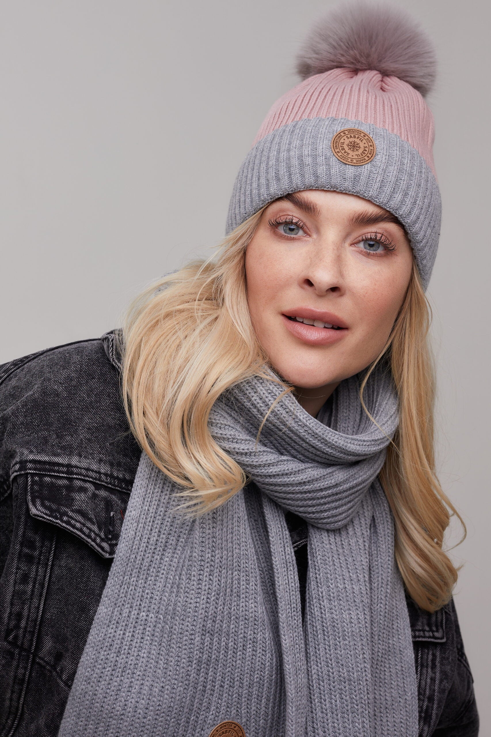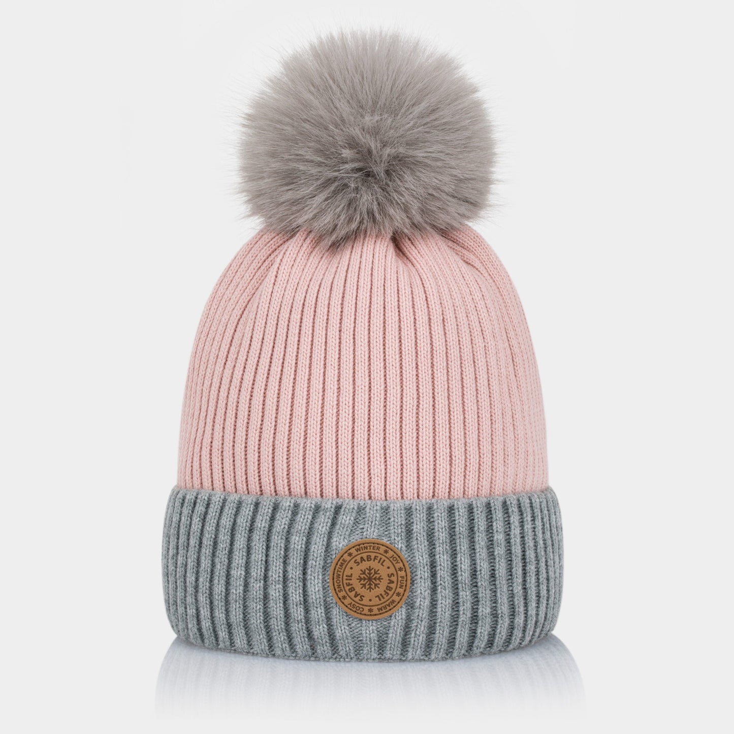 Ženska zimska kapa Gigi s cofom, siva roza