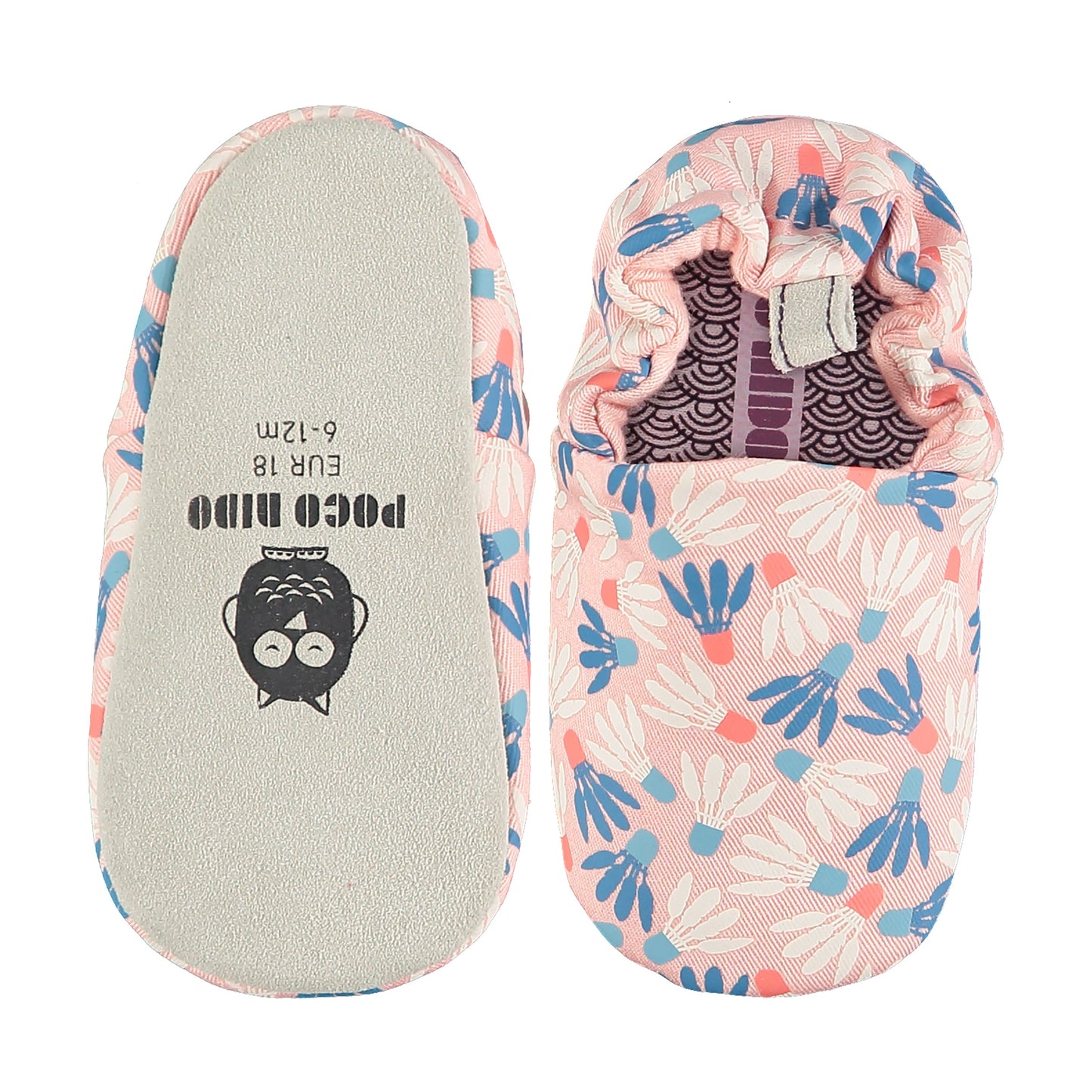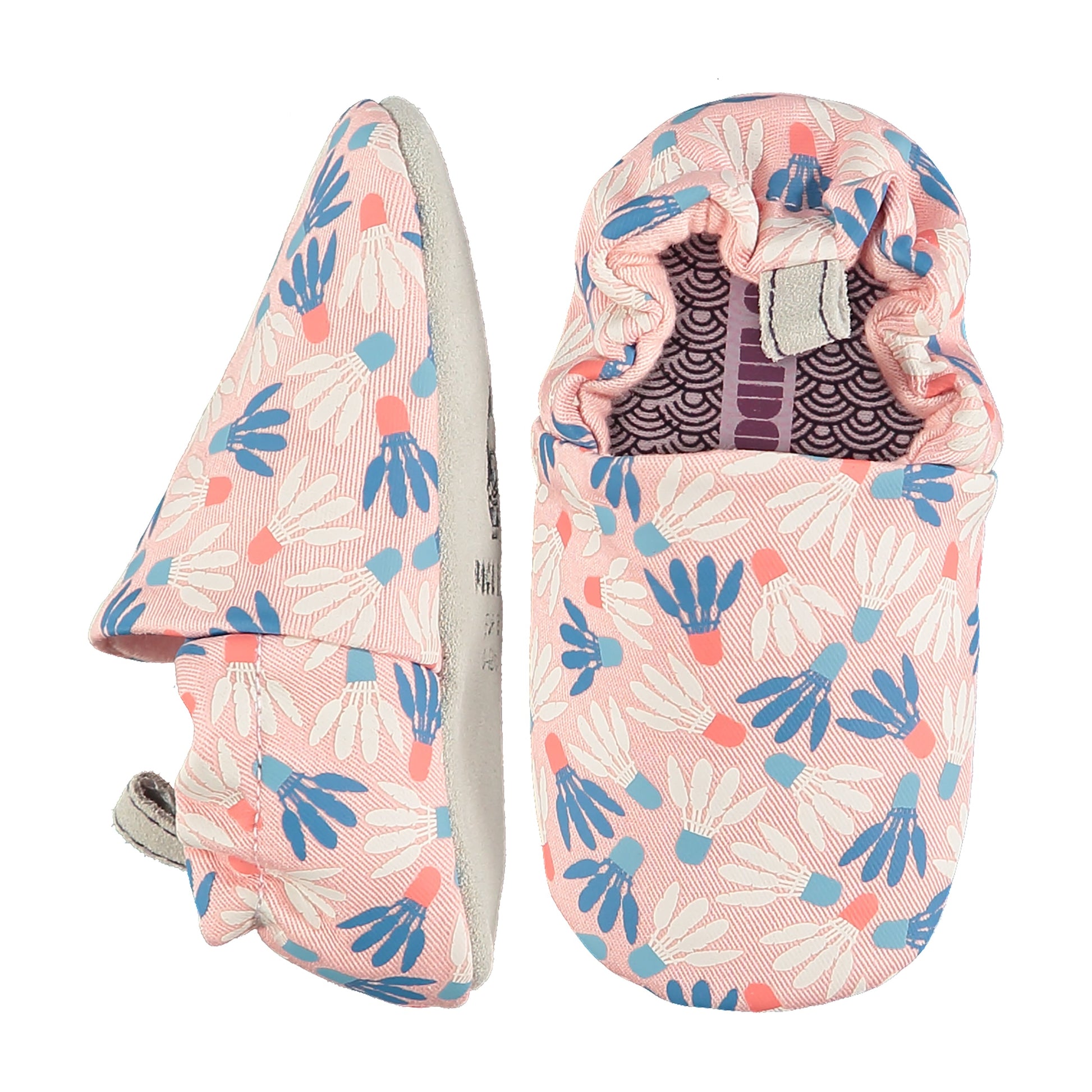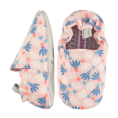 Bosonogi copati za dojenčke in malčke iz potiskanega bombaža z mehko podlogo iz jerseyja. Velikosti 23 in 24 imata veganski poliestrski podplat s pikami. Ti barefoot copati imajo nedrseč mehak podplat iz semiša za dodatno vzdržljivost in zaščito. Popolni copati za aktivne malčke omogočajo naravno gibanje za pomoč pri ravnotežju in koordinaciji na vsaki stopnji njihovega razvoja.